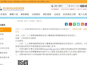 公告「人工智慧/機器學習技術之醫療器材軟體查驗登記技術指引」